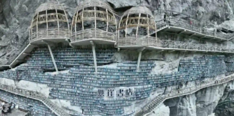 La Mianhua Library abrió sus puertas en mayo de este año en la provincia de Guanxi en China se ubica dentro de una gruta excavada en un acantilado cercano al pueblo de Mianhua, lo que la ha convertido en un punto de atracción para turistas y locales, además de un fenómeno viral en redes sociales del país asiático.